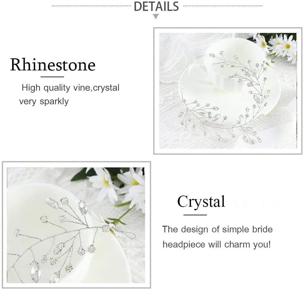 This exquisite crystal leaf bridal hairpiece features shimmering crystal embellishments on a U-shaped structure — designed to catch the light beautifully and stay securely in place throughout your entire wedding day.